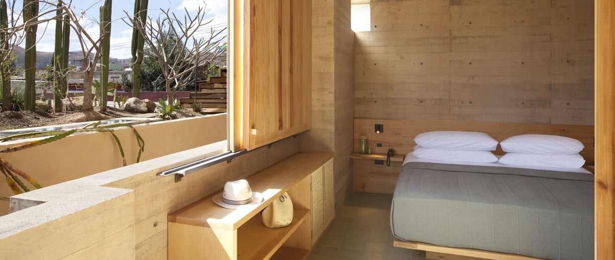 Hotel Escondido is an adults-only boutique retreat along Playa Palmarito beach, northwest of Puerto Escondido, Mexico. Designed by Federico Rivera Río, the hotel features 16 private bungalows with palapa-style roofs, each equipped with its own plunge pool, air conditioning, Wi-Fi, cable TV, minibar, and eco-friendly toiletries.